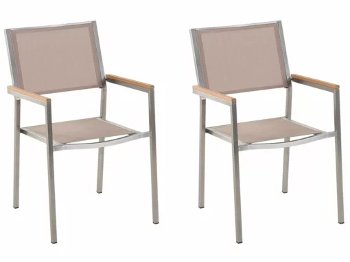 Beliani Tuinstoel Set Van 2 RVS Beige GROSSETO
