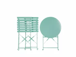 Deze veelzijdige set, bestaande uit twee mintgroene stoelen gecombineerd met een functionele terrastafel, is perfect voor een terras of balkon met elk ontwerpschema. Alle elementen zijn licht en vouwbaar zodat deze makkelijk kunnen worden opgeborgen. De hoogwaardige, ongelegeerde stalen constructie maakt langdurig gebruik buitenshuis mogelijk. Deze charmante bistroset is perfect om dat plekje in je balkon of terras te creëren waar je kunt ontspannen. Geniet van je drankje en pak wat zonnestralen.