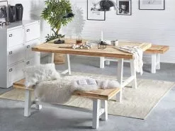 De klassieke houten bank is opnieuw ontworpen om het geheel modern en functioneel te maken. De prachtige tafel toont zijn natuurlijke uitstraling in een minimalistische en eigentijdse omgeving.Het is met olie afgewerkt voor een lange levensduur.