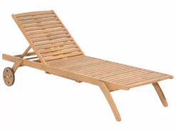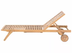 Dit houten ligbed is een perfecte combinatie van duurzaamheid en stijl. Gemaakt van massief, slijtvast acaciahout. Het past mooi bij elke exterieurstijl, van een met planten versierde achtertuin tot een minimalistische, luxe zwembad. De verstelbare rugleuning leunt naar een volledig vlakke positie voor nog meer comfort. Praktische kenmerken zoals de wieltjes en het uitschuifbare dienblad maken het een ideale keuze voor de zomer.