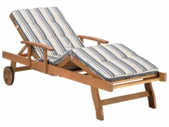 Ligbed van acaciahout met donkerblauw en beige kussen