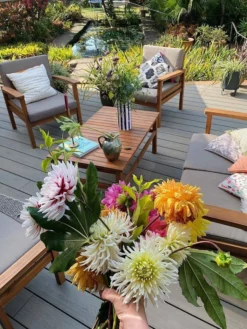 Licht waterafstotend waardoor je ze gemakkelijk buiten kan gebruiken, en buiten kan houden ondanks regen en vochtigheid. Wanneer het niet mogelijk is om binnen te zetten wanneer deze niet wordt gebruikt, raden we aan om een hoes te gebruiken. Het langdurig blootstellen van meubels en accessoires aan vocht kan schade veroorzaken.