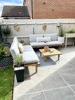 Licht waterafstotend waardoor je ze gemakkelijk buiten kan gebruiken, en buiten kan houden ondanks regen en vochtigheid. Wanneer het niet mogelijk is om binnen te zetten wanneer deze niet wordt gebruikt, raden we aan om een hoes te gebruiken. Het langdurig blootstellen van meubels en accessoires aan vocht kan schade veroorzaken.