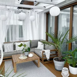 Licht waterafstotend waardoor je ze gemakkelijk buiten kan gebruiken, en buiten kan houden ondanks regen en vochtigheid. Wanneer het niet mogelijk is om binnen te zetten wanneer deze niet wordt gebruikt, raden we aan om een hoes te gebruiken. Het langdurig blootstellen van meubels en accessoires aan vocht kan schade veroorzaken.