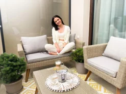 Beliani Loungeset 4-zits Rotan Bruin/grijs VITTORIA