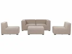 Modern design, comfort en functionaliteit – het omschrijft deze tuinbankset perfect. De set is bekleed met weer- en UV-bestendige stof en heeft een sneldrogende schuimvulling, waardoor hij ideaal is voor buiten. De diepe zitting zorgt voor een ongelooflijk zitcomfort, terwijl het metalen frame stabiliteit garandeert. Deze loungeset voor buiten staat prachtig in elke tuin, maar zal ook goed staan in een woonkamer. Je kunt elk onderdeel van de set afzonderlijk of samen in je favoriete combinatie plaatsen en de poef gebruiken als voetensteun of tafel.