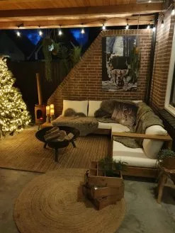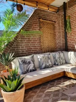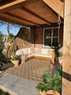 Licht waterafstotend waardoor je ze gemakkelijk buiten kan gebruiken, en buiten kan houden ondanks regen en vochtigheid. Wanneer het niet mogelijk is om binnen te zetten wanneer deze niet wordt gebruikt, raden we aan om een hoes te gebruiken. Het langdurig blootstellen van meubels en accessoires aan vocht kan schade veroorzaken.