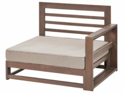 Deze klassieke tuinbankset wordt geleverd met een salontafel en modulaire elementen die kunnen worden gecombineerd tot een gezellige hoekbank of afzonderlijk kunnen worden gebruikt. Hij is gemaakt van gecertificeerd acaciahout in een mooie, donkere houttint, perfect om buiten te loungen en gemakkelijk schoon te maken. Met de dik gevoerde zit- en rugkussens in combinatie met een comfortabel, laag designframe is dit de perfecte blikvanger voor elke moderne tuin of terras.