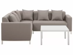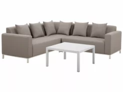 Beliani Loungeset 5-zits Stof Beige Rechtszijdig BELIZE