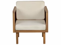 Creëer een moderne en comfortabele ontspanningsruimte op uw terras met deze loungeset. Deze 6-zits set bestaat uit twee banken, een tuinstoel, een voetenbank en een salontafel. De meubels van hoogwaardig acaciahout zijn duurzaam en solide. Ze passen perfect in elke buitenruimte en voegen een natuurlijke uitstraling toe. De meegeleverde crèmewitte kussens bieden de juiste ondersteuning en extra comfort. Geniet van het buitenleven met vrienden en familie met deze prachtige set.