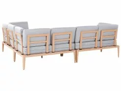 Creëer een comfortabele zithoek in je tuin met deze fantastische loungeset. Het frame is gemaakt van aluminium en daardoor verrassend licht en eenvoudig schoon te maken. Comfortabel zitten is gegarandeerd dankzij dik gevoerde zit- en rugkussens in een trendy kleur. De modulaire functie zorgt voor een snelle ontwerpverandering, het samenvoegen van de drie delen met een meegeleverde connector, of het creëren van aparte zitgroepen in een oogwenk. De set wordt ook geleverd met twee salontafels, wat het buitengewoon multifunctioneel maakt.