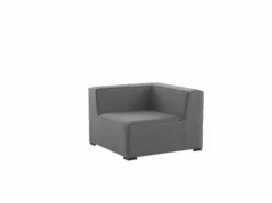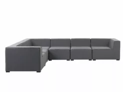 Dit veelzijdige set bestaat uit drie hoekbanken, drie middenstukken zonder armleuningen en een vierkante bijzettafel. De onderdelen zijn allemaal in elkaar te schuiven en met elkaar te verbinden middels een modulair verbindingssysteem, waardoor een grote, ruime hoekopstelling ontstaat. Je kan echter ook alle zitelementen als los plaatsen en zo de indeling flexibel naar wens aanpassen aan jouw ruimtelijke omstandigheden. De grote bijzettafel dient als praktische opbergruimte, als comfortabele voetenbank of zelfs als extra zitplaats. De stevige, zwarte voet is gemaakt van gepoedercoat metaal. Dit loungemeubilair voor binnen en buiten is perfect om het hele jaar door buiten te gebruiken. Het tuinmeubilair is aan de binnenkant opgevuld met een sneldrogend schuim, dat dankzij zijn speciale structuur water veel sneller doorlaat dan zeer elastische schuimen.