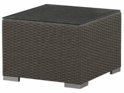Deze zomer wordt gezellig met deze set die genoeg ruimte biedt voor al jouw vrienden en familie. De loungeset bestaande uit een tweepersoonsbank met rechter- en linkerarmleuning, twee hoekelementen, een zitelement zonder armleuningen en een fauteuil biedt het verschillende mogelijke combinaties. De salontafel en de praktische bijzettafel hebben beide een stabiel tafelblad van 5 mm dik veiligheidsglas met afgeronde hoeken en bieden voldoende ruimte voor drankjes, ijsbekers en je zomerse leeswaar.