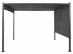 Breng tijd door met je familie en vrienden, zelfs tijdens warme zomerdagen, en voorzie jezelf van een luifel boven uw tuinlounge- of eetset. De robuuste pergola is gemaakt van duurzaam, gepoedercoat staal dat garant staat voor een stabiele constructie en een UV-bestendige schuifluifel die van de ene naar de andere kant kan worden verplaatst. Zodra het begint te schemeren zullen de LED-lampjes automatisch de ruimte verlichten.