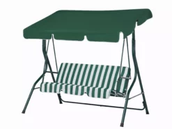 Laat je betoveren door deze elegante schommelbank. Ze heeft een zeer klassiek design meegekregen en overtuigt met haar verschijningsbeeld ook elke tuinliefhebber. De afwerking is bijzonder precies, waardoor je geen kostbare tijd verliest aan de montage. Maar ook de aangename zittingen en het romantische zonnedak harmoniseren in kleur en vorm en verleiden tot koop. Met deze schommelbank kun je een zorgeloze en ontspannen zomer onder een zonnedak van de bovenste klasse tegemoet zien. Geniet van de warme maanden op de zacht gevoerde schommelbank en laat je gaan.