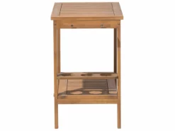 Multifunctionele theetafel in een eenvoudig en klassiek ontwerp dat goed past bij elke buiteninrichting. Het ontwerp biedt voldoende ruimte om drankjes, snacks of keukengerei op te bergen. Dankzij de flessenhouder op de onderste plank kunt u tot 3 flessen wijn veilig opslaan zonder het gevaar dat ze worden omgekeerd. Het dienblad is voorzien van 2 wielen en een stevig handvat, waardoor het gemakkelijk te verplaatsen is.