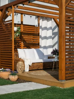 Breng het lounge en Californië gevoel direct in jouw tuin. Of het nu is voor ontspannen uurtjes met z’n tweeën op het terras of misschien als comfortabele zitmogelijkheid bij tuinfeestjes – deze bank is altijd een uitstekende keuze. De zachte en gezellige kussens in crèmewit geven de bank een mediterraan tintje en combineren uitstekend met de natuurlijke rotanlook.