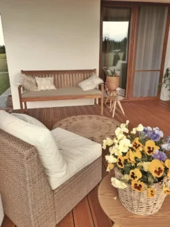 Moderne tuinbank van duurzaam acaciahout met kussen
