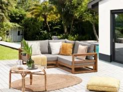 Deze tuinbank is voorzien van modulaire elementen die aan elkaar kunnen worden gezet of als aparte zitplaatsen kunnen worden gebruikt. Het is gemaakt van acaciahout in een mooie, lichte houttint en is perfect voor loungeruimtes buiten, en het is gemakkelijk schoon te maken. Met de dik gevoerde zit- en rugkussens, in een taupe tint, gecombineerd met een comfortabel, laag design frame, is dit de perfecte blikvanger voor elke moderne tuin of terras.