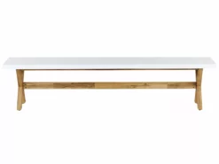 Deze tuinset geeft je een fijne eethoek in je tuin of op je terras. Perfect voor een gezellig familieontbijt of een brunch met vrienden. Aan de grote tafel met de bijpassende banken is genoeg ruimte voor zes personen. Alle onderdelen van dit tuinset zijn gemaakt van onderhoudsvriendelijke, duurzame en weerbestendige materialen. Het tafelblad en de stoelen zijn gemaakt van vezelcement, de stevige onderstellen van het meubilair zijn gemaakt van acaciahout.