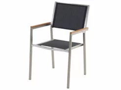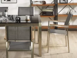 Een exclusieve tuinset die een stijlvolle touch geeft aan je tuin of terras. Met een mooie combinatie van roestvrij staal en glas voor een moderne uitstraling. Het tafelblad is weerbestendig en de lichte kleur past perfect bij de zilveren contouren. Het stalen frame is duurzaam, waardoor de meubelen ook na verloop van tijd mooi blijven. Stapelstoelen van stevig frame en UV-bestendig wit materiaal zijn een perfecte aanvulling op de tafel.