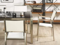 Een exclusieve tuinset die een stijlvolle touch geeft aan je tuin of terras. Met een mooie combinatie van roestvrij staal en glas voor een moderne uitstraling. Het tafelblad is weerbestendig en de lichte kleur past perfect bij de zilveren contouren. Het stalen frame is duurzaam, waardoor de meubelen ook na verloop van tijd mooi blijven. Stapelstoelen van stevig frame en UV-bestendig wit materiaal zijn een perfecte aanvulling op de tafel.