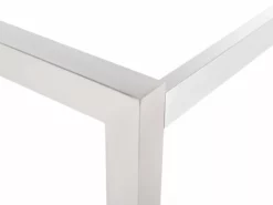 Het glanzende frame van geborsteld roestvast staal is uiterst stabiel en watervast. De granieten plaat is extreem weerbestendig en perfect afgewerkt, waardoor deze een onverwoestbaar tafelblad vormt.