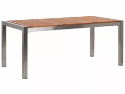 Een exclusieve tuinset die een stijlvolle touch geeft aan je tuin of terras. Met een prachtige combinatie van roestvrij staal en natuurlijk eucalyptushout voor een moderne uitstraling. Het houten tafelblad is weerbestendig en de lichte houtkleur past perfect bij de zilveren contouren. Het stalen frame is duurzaam, waardoor de meubelen ook na verloop van tijd mooi blijven. Stapelstoelen van stevig frame en UV-bestendig rotan zijn een perfecte aanvulling op de tafel.