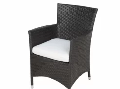 Deze tuinset is praktisch en stijlvol, de ultieme oplossing om gasten buiten te ontvangen. De set is gemaakt van stevig, lichtgewicht polyrotan en is zo gemakkelijk bestand tegen diverse weersomstandigheden. Het tafelblad is gemaakt van van krasvast, gehard glas. De stoelen hebben diepe zittingen, een hoge rugleuning en armleuningen voor eenvoudig comfort.