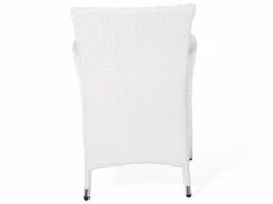 Set van 2 stijlvolle tuinstoelen met ergonomische armleuningen en hoge rugleuningen.Gemaakt van wit duurzaam synthetisch rotan voor langdurig gebruik. De stoelen worden geleverd met dikke kussens met afneembare hoes om gemakkelijk schoon te maken. Het gepoedercoat aluminium frame garandeert stabiliteit. Samen of apart zijn ze perfect voor buiten. Het moderne ontwerp en hoge kwaliteit materiaal verzekeren dat de stoelen lang mee zullen gaan.