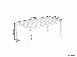 Richt uw tuin in voor de zomer met deze eettafel. Dankzij zijn duurzaamheid en onderhoudsvriendelijkheid is deze tafel ook weerbestendig en kan dus lang meegaan. Vanwege de afmetingen is er voldoende ruimte voor 6 personen, zodat u met uw familie en vrienden kunt genieten.