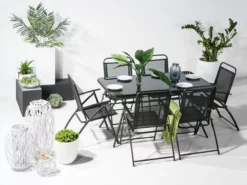 Beliani Tuintafel Glas/staal Zwart 140 X 80 LIVO